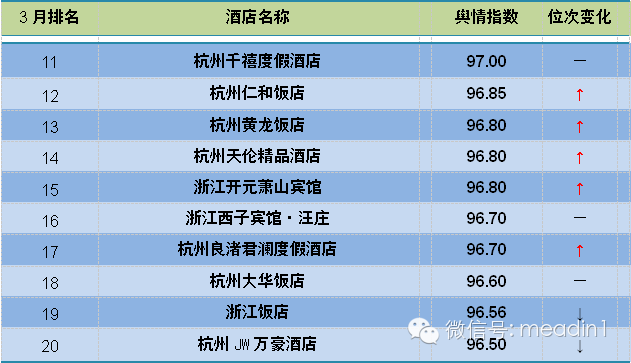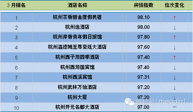 注:当酒店舆情指数相同时,再比较各酒店环比指数状况,环比上升快的酒店位次在前